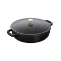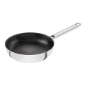 Tigaia saute Affinity, cu capac, diametru 24 cm, capacitate 3 l, produsa de cunoscutul brand francez de Buyer, este alegerea perfecta pentru a reduce suculenta preparatelor, datorita formei sale ce permite o evaporare mai rapida. Avand marginea dreapta este ideala pentru a sota legume mici si carne. Materialele calitative din care este fabricata tigaia – o combinatie intre inox, la exterior, si aluminiu in interior – impiedica deformarea vasului. Aceste doua materiale au proprietati termice excelente, creand o distributie a caldurii uniforma. Tot datorita acestor materiale, temperatura va creste rapid in timpul gatirii, reducand durata intregului proces, si va scadea imediat ce plita va fi oprita. Incalzirea intregului vas se va realiza uniform, iar temperatura de gatit va fi ideala pentru orice reteta. Designul manerelor din inox prinse cu 2 nituri foarte solide este rezistent, neted, si permite manevrarea tigaii intr-o maniera comoda. Acestea au fost concepute in asa fel incat sa pastreze o temperatura scazuta atunci cand tigaia este supraincalzita. De ce tigaia saute din gama Affinity? Pentru ca... Are un aspect modern si elegant; Poate fi curatata la masina de spalat vase (desi va recomandam sa o spalati manual); Suprafata sa este neteda si are un aspect polisat; Este dotata cu capac din inox; Poate fi utilizata pe toate tipurile de plite, inclusiv pe cele cu inductie. Dimensiuni: Inaltime: 7 cm; Diametru: 24 cm; Diametru baza: 20,5 cm; Grosime: 2,7 mm; Capacitate: 3 l.