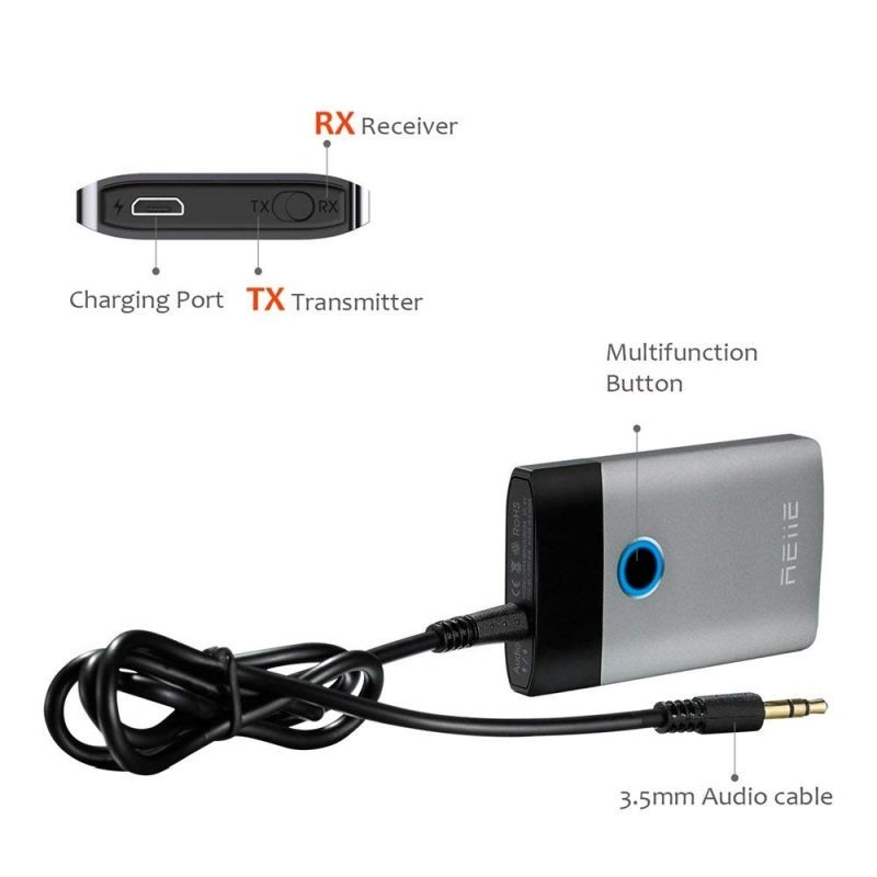 Transmitator si receptor Bluetooth 4.1, Jack 3.5 mm, A2DP, AVRCP, SBC, AAC si TTS Conversia oricarui dispozitiv din casa dumneavoastra intr-un receptor sau transmitator Bluetooth se poate realiza acum cu acest dispozitiv care va functiona perfect cu sistemul audio, casti Bluetooth, PC, TV, tableta, telefon etc. Un adaptor stabil APT-X Bluetooth 4.1 ofera conexiuni de inalta calitate indiferent daca transmite sau receptioneaza sunete. Prin urmare, veti beneficia de o sincronizare video si audio excelenta pana la o distanta de 10 m atunci cand utilizati acest dispozitiv Bluetooth. Utilizarea unui receptor sau a unui transmitator Bluetooth nu ar putea fi mai ușoara. Pur si simplu conectati mufa audio de 3.5 mm in portul de intrare/iesire audio de pe dispozitiv si comutați dispozitivul la TX (Transmitator) sau RX (Receptor). Are chiar si o functie de memorie care ajuta dispozitivul sa se reconecte automat la ultimul dispozitiv asociat. Realizat din metal si ABS, materiale durabile, acest receptor si transmitatorr Bluetooth de la REIIE este de inaltă calitate. De asemenea, are o baterie reincarcabila Litiu-ion care ofera o durata lunga de viata, functioneaza pana la 10 ore in modul TX si 8 ore in modul RX. Caracteristici: - receptor si transmitator Bluetooth; - conectare audio cu mufa Jack 3.5 mm; - permite receptionarea Bluetooth pentru difuzoare, casti si alte sisteme audio; - permite transmisie Bluetooth pentru MP3-Player, CD/DVD Player, televizoare, tableta, PC si multe altele; - Bluetooth versiunea 4.1; - profilele Bluetooth APT-X si APTX-LL; - compatibil cu A2DP, AVRCP, SBC, AAC si TTS; - reconectare si oprire automata; - comutator mod TX (Transmitator) sau mod RX (Receptor); - buton multifunctional; - raza de actiune pana la 10 m; - acumulator Litiu-ion; - LED pentru afisare incarcare baterie; - autonomie pentru modul TX aproximativ 10 ore; - autonomie pentru modul RX aproximativ 8 ore; - se poate utiliza in timpul incarcarii; - frecventa de raspuns 20HZ-22KHZ; - voltaj DC 5V; - port micro USB pentru incarcare; - cablu Jack 3.5 de 15 cm inclus si cablu micro USB pentru incarcate cu lungime de 75 cm inclus; - amperaj 10 MA; - putere 0.2W; - dimensiune dispozitiv 42.3x69.5x9.7 mm (2.74x1.66x0.38 inch); - greutate 30 g; - culoare gri cu negru.