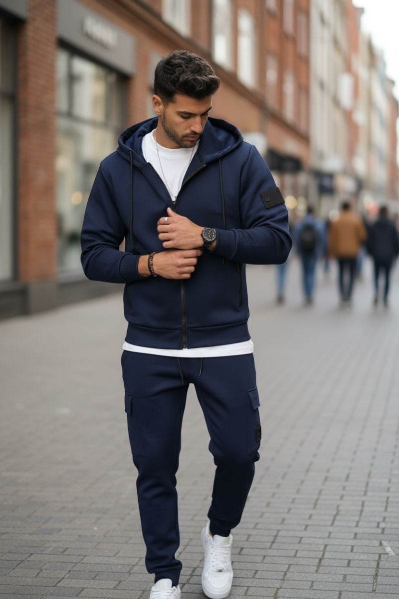 Trening barbati slim fit bleumarin, Pantaloni + Hanorac, silon , 5047