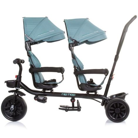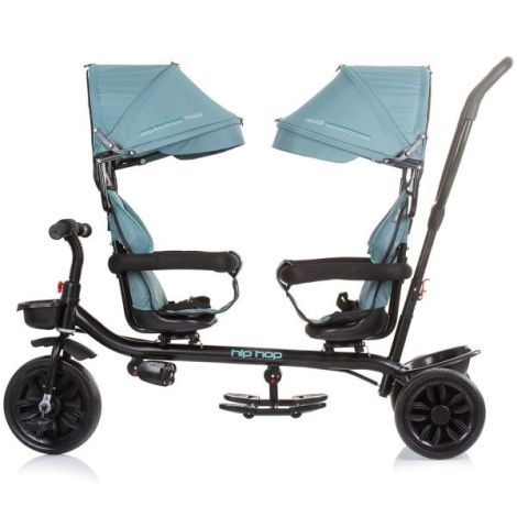 Detalii Tricicleta gemeni Chipolino Hip HopCaracteristici:Potrivita pentru doi copii cu varsta peste 1,5 ani, cu o greutate totala de pana la 40 kgPoate fi pusa in miscare de catre copil cu ajutorul pedalelor sau poate fi impins de catre parinteAmbele sezuturi sunt rotative cu o rotatie de 360 gradeAmbele sezuturi sunt dotate cu bara de protectieManer de dirijare confortabilDoua suporturi pentru picioare reglabile, pliabileAparatoare noroi la roata din fataCopertine mari, reglabile pe ambele sezuturi, cu vizoareDoua sezuturi mari, confortabile cu husaCentura de siguranta la ambele sezuturiCosuri de depozitare in fata si in spateRoata fata cu capac ce previne prinderea accidentala a picioarelor copiluluiFabricat in conformitate cu standardele si directivele uniunii europene pentru siguranta jucariilorDimensiuni produs (LxWxH): 131 x 49 x 95 cmDimensiuni ambalaj (LxWxH): 110 x 44 x 30 cmGreutate neta: 9,40 kgGreutate bruta: 11,00 kgAVERTISMENTE!A se utiliza cu echipament de protectie. A nu se utiliza in trafic.Verificati si intretineti in mod constant partile principale (elemente de sustinere, fixare, ancorare, etc.) pentru evitarea caderii sau a rasturnarii.Contraindicat copiilor mai mici de 3 ani. Jucaria/produsul poate contine piese mici care se pot inghiti sau inhala existand pericolul de sufocare sau nu este potrivita copiilor mai mici de 3 ani. Nu lasati ambalajele jucariilor/produselor la indemana copiilor. Indepartati orice ambalaj al jucariei/produsului inainte de a da jucaria/produsul copilului. Va rugam sa supravegheati copilul in timp ce se joaca/foloseste acest produs. Pastrati instructiunile si etichetele pentru referinte viitoare. Pastrati jucaria/produsul departe de foc; feriti jucaria/produsul de temperaturi ridicate si umiditate.