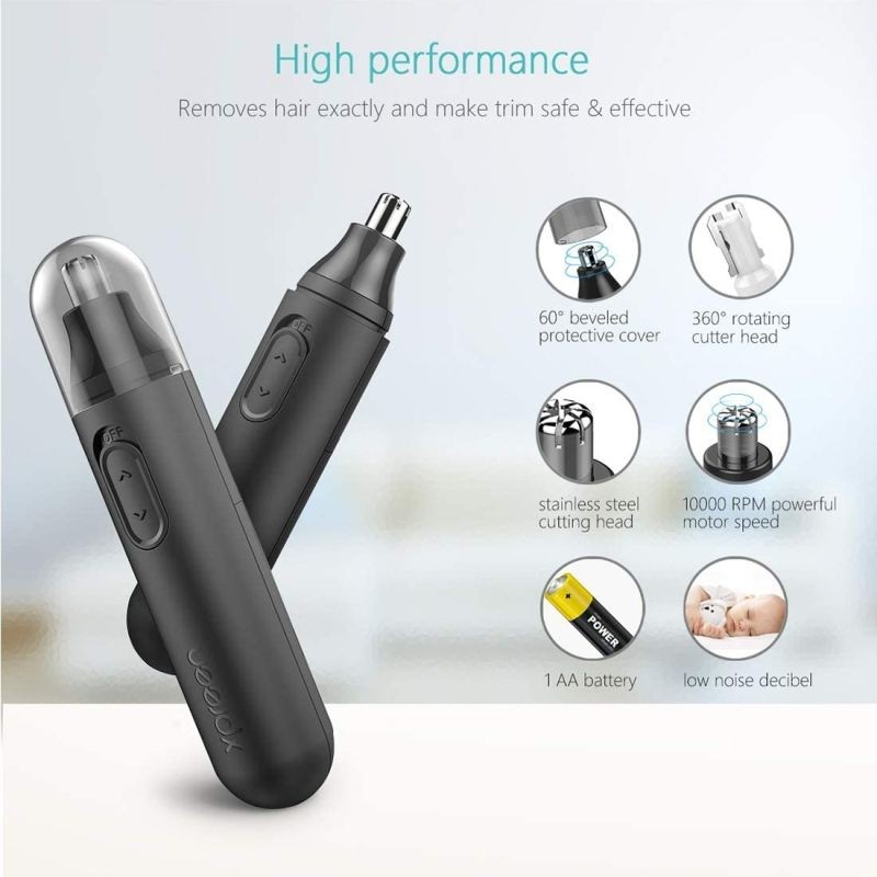 Trimmer pentru nas si urechi, lame otel, 10000 rpm, lavabil, alimentare baterii Nu puteti preveni aparitia parului nedorit in diverse parti ale corpului insa cel putin il puteti controla! Trimmerul portabil de mici dimensiuni este destinat eliminarii parului inestetic din nas si urechi. Lamele aparatului sunt confectionate din otel inoxidabil de calitate superioara. Functioneaza cu 1 baterie de tip AA (neinclusa). Recomandam baterii alkaline. Acest aparat beneficiaza de o forma ergonomica fiind usor de manevrat, nu va atinge pielea si nu o irita. Viteza motorie de 10000 RPM și si cap de taiere rotativ la 360 grade, ce taie rapid si precis fara a trage. Trimmerul are dimensiuni reduse si este mult mai bun decat foarfeca sau masinile de tuns obisnuite, care sunt grele si mai dificil de manevrat in anumite zone. Caracteristici: - trimmer pentru indepartarea parului nedorit; - lame din otel inoxidabil; - viteza motorie 10000 RPM; - cap rotativ 360 grade; - buton ON/OFF; - foarte usor de curatat sub jetul de apa; - design ergonomic; - periuta care faciliteaza curatarea lamei dupa utilizare; - material ABS si otel inoxidabil; - alimentare baterie 1xAA (neinclusa); - dimensiuni 12.6x2.5x2.7 cm; - greutate 42 grame; - culoare negru.