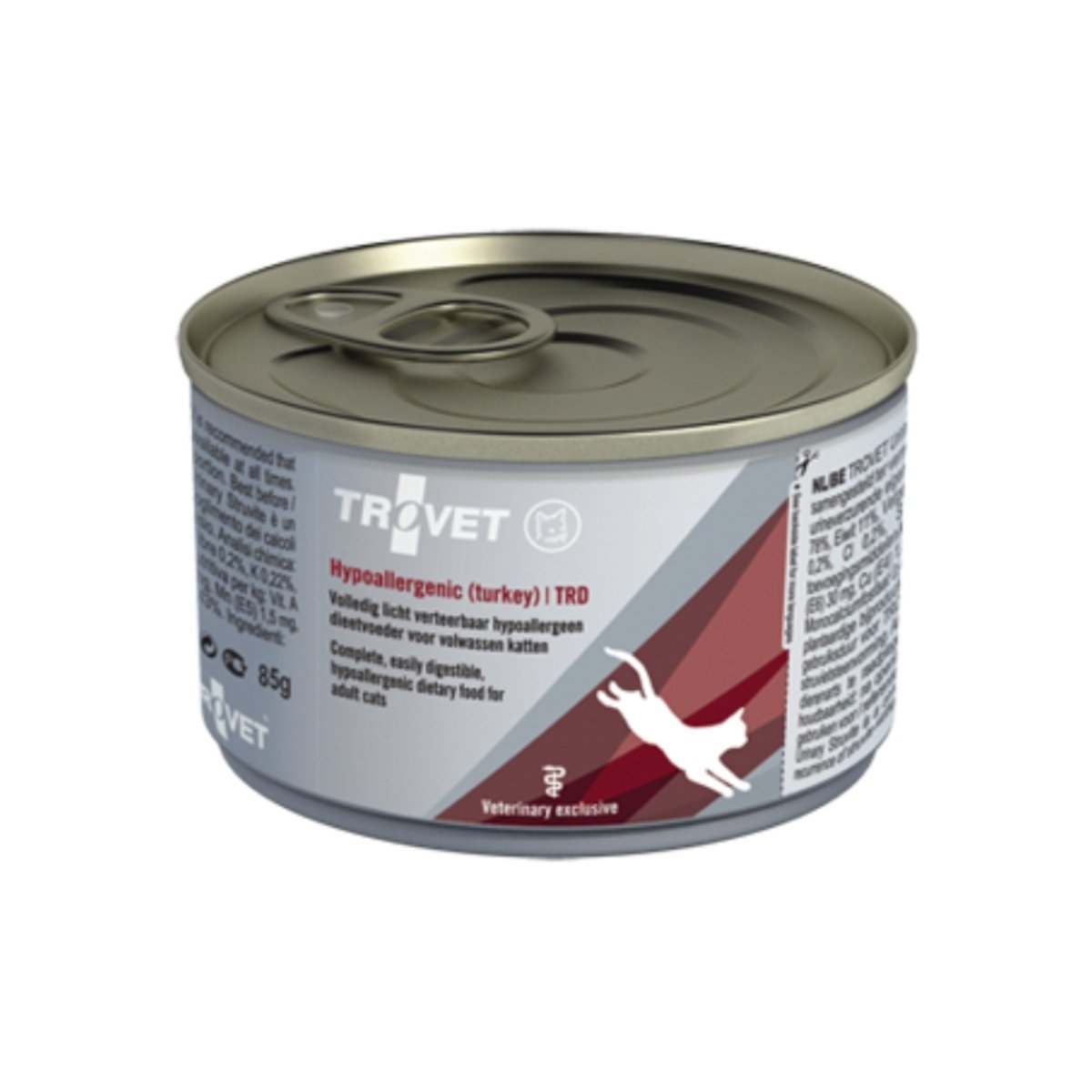 TROVET Cat Hypoallergenic TRD, Curcan, dietă veterinară pisici, conservă hrană umedă, afecțiuni digestive și dermatologice, (pate), 200g
