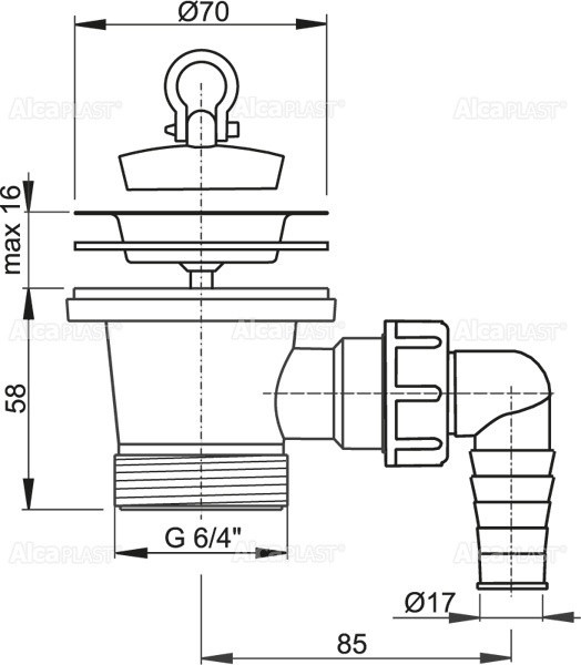 Aplicabilitate: Ventil lavoar 6/4 Alcaplast A33P cu sita din otel inoxidabil DN70 si legatura la masina de spalat Pentru lavoar/chiuveta Caracteristici / Specificatii Tehnice: Filet 6/4 pentru racordare la sifon Cu conector pentru mașină de spălat rufe sau vase Racord furtun: 17-23mm Material: polipropilenă Descarcari: