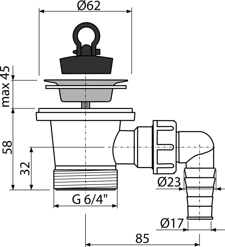 Aplicabilitate: Pentru lavoar Ventil lavoar 6/4 Alcaplast A31P cu sita din otel inoxidabil DN63 si legatura la masina de spalat Caracteristici / Specificatii Tehnice: Filet 6/4 pentru racordare la sifon Cu conector pentru mașină de spălat rufe sau vase Racord furtun: 17-23mm Material: polipropilenă Descarcari: