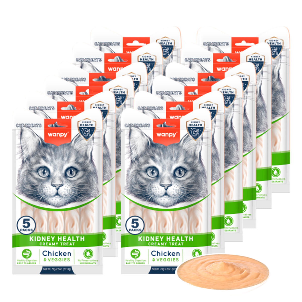 WANPY Kidney Health Creamy Treat, Pui și Legume, punguță recompense funcționale pisici, sistem renal, (piure), 70g