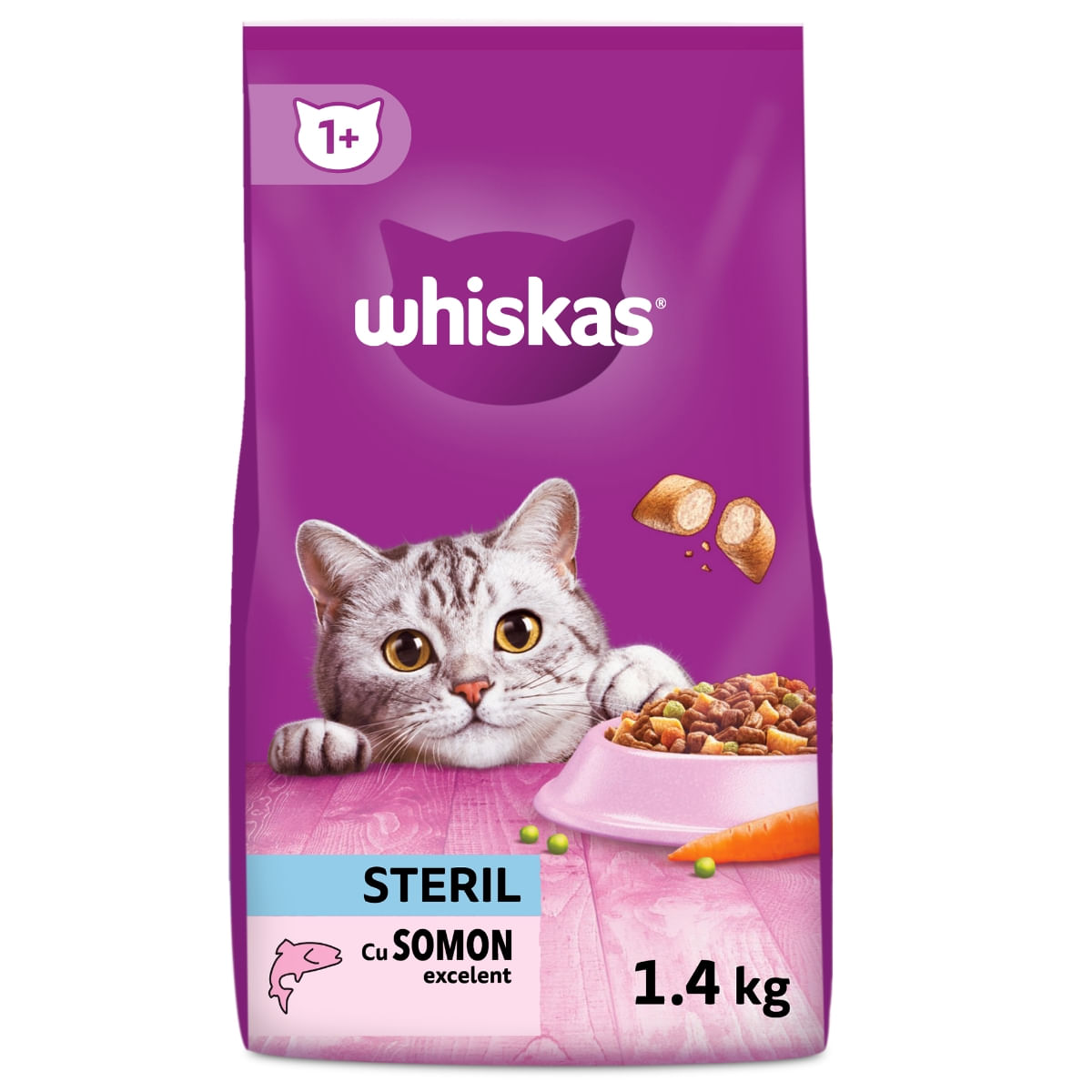 WHISKAS Adult Sterile, Somon, hrană uscată pisici sterilizate, 1.4kg