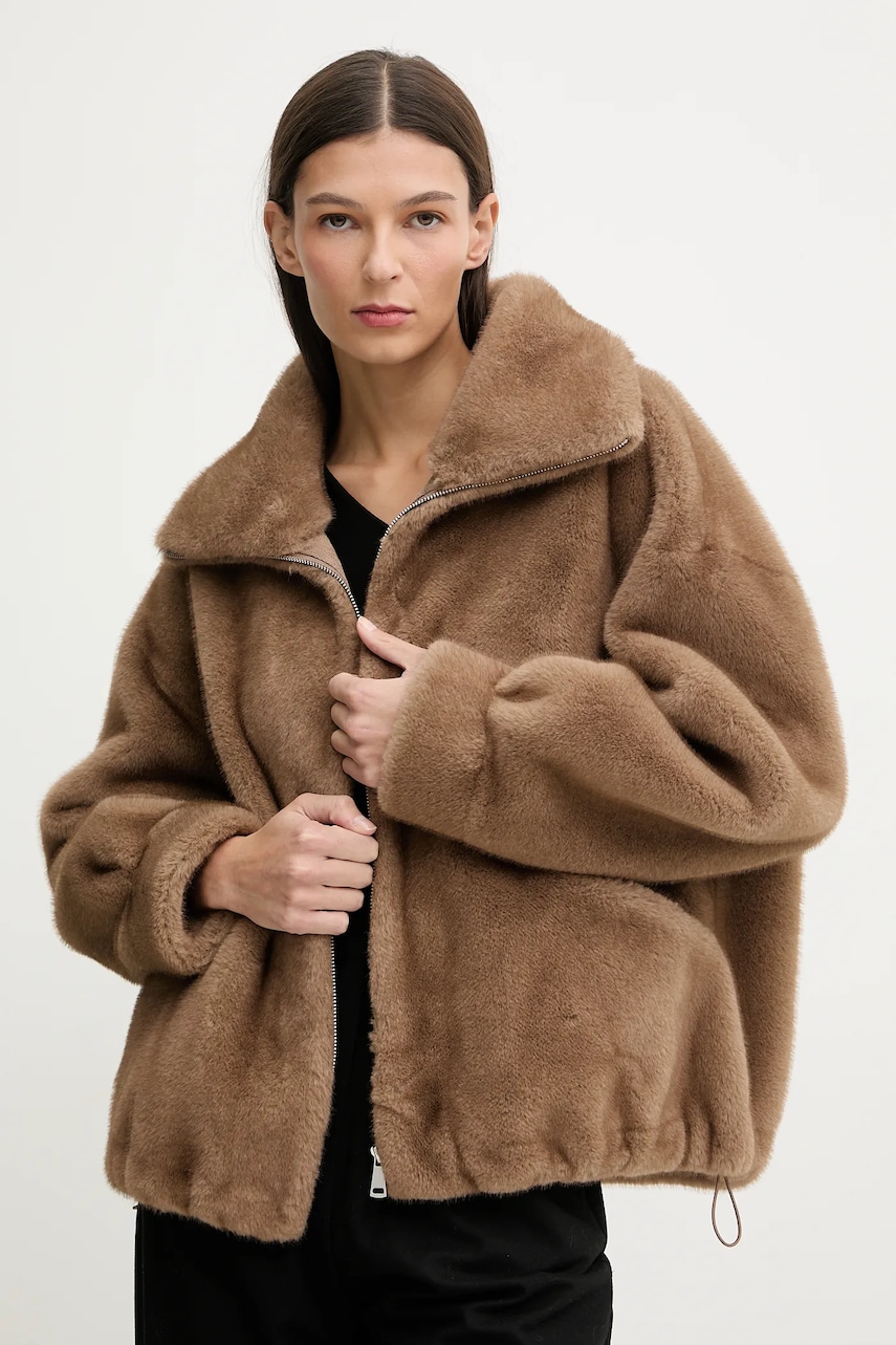 Answear.LAB geaca culoarea maro, de tranzitie, oversize