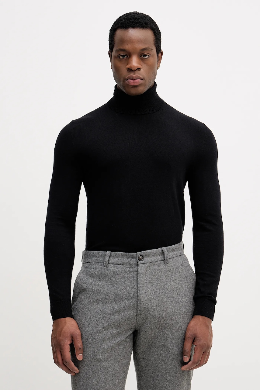 Sisley pulover din amestec de lână culoarea negru, light, cu turtleneck, 1WH2M2025