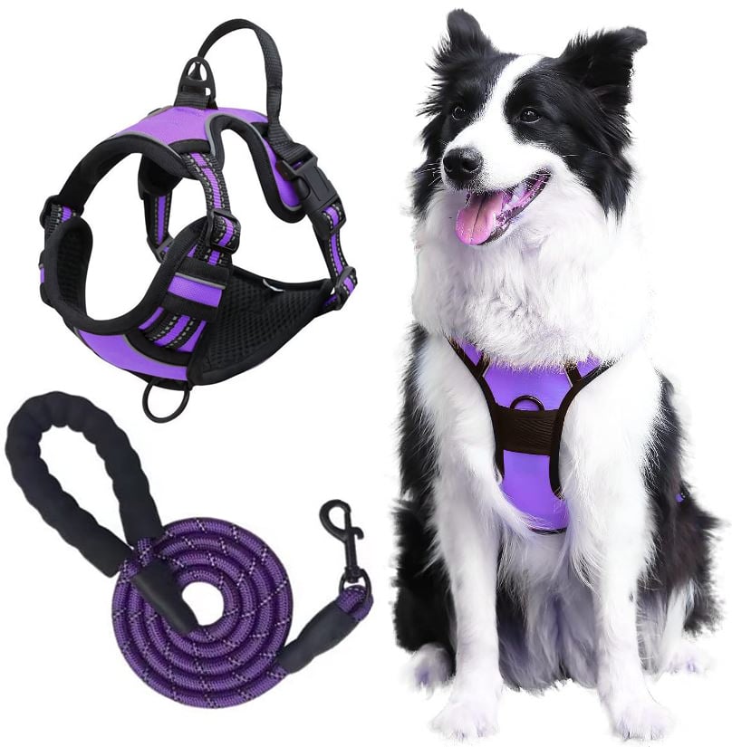 Set Ham și Lesa, pentru Caini, Marimea XL, Benzi reflectorizante, Maner control, Material textil, Mov Engros