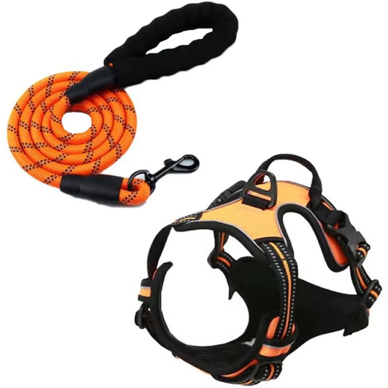 Set Ham și Lesa, pentru Caini, Marimea XL, Benzi reflectorizante, Maner control, Material textil, Portocaliu Engros