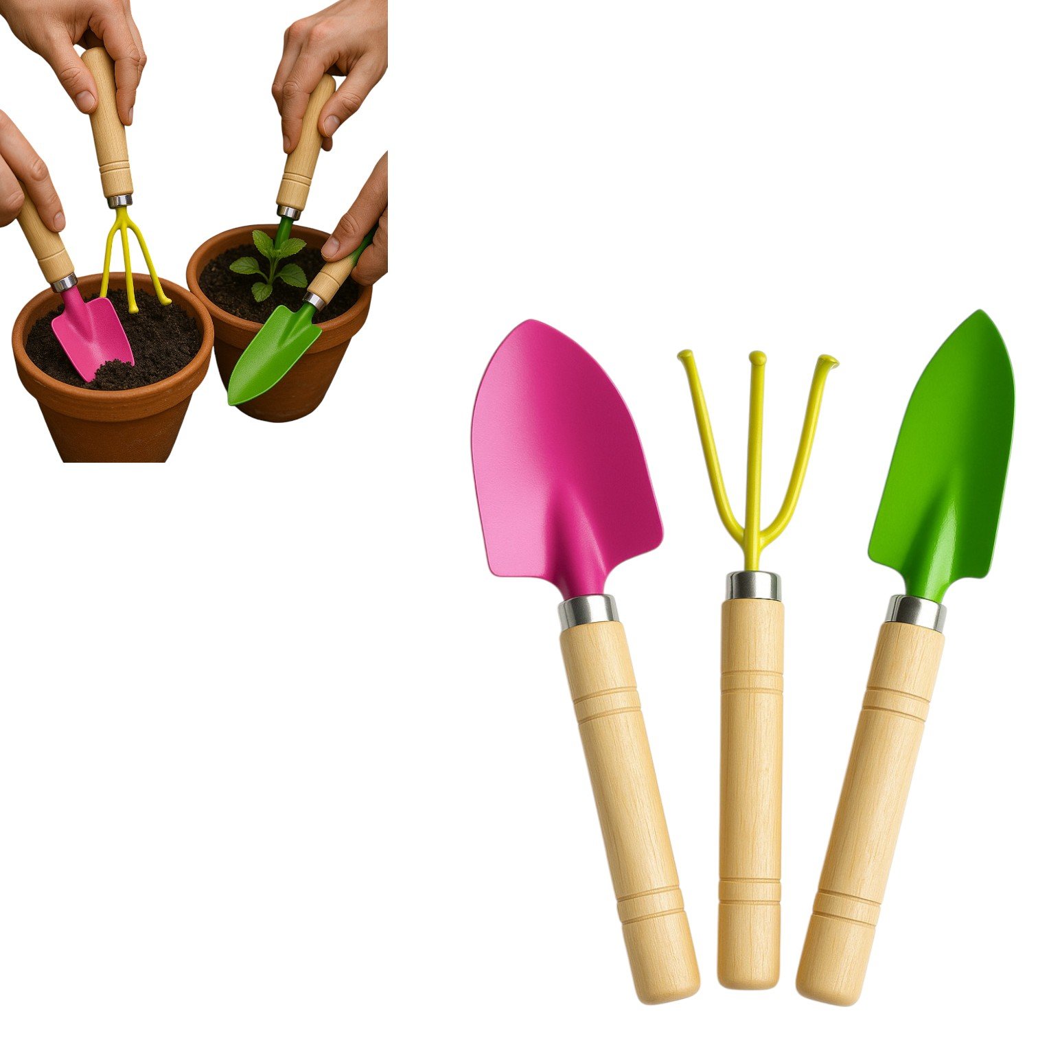 Unelte de Grădinărit 3/set, cu Maner din Lemn 17cm Diferite Modele Engros