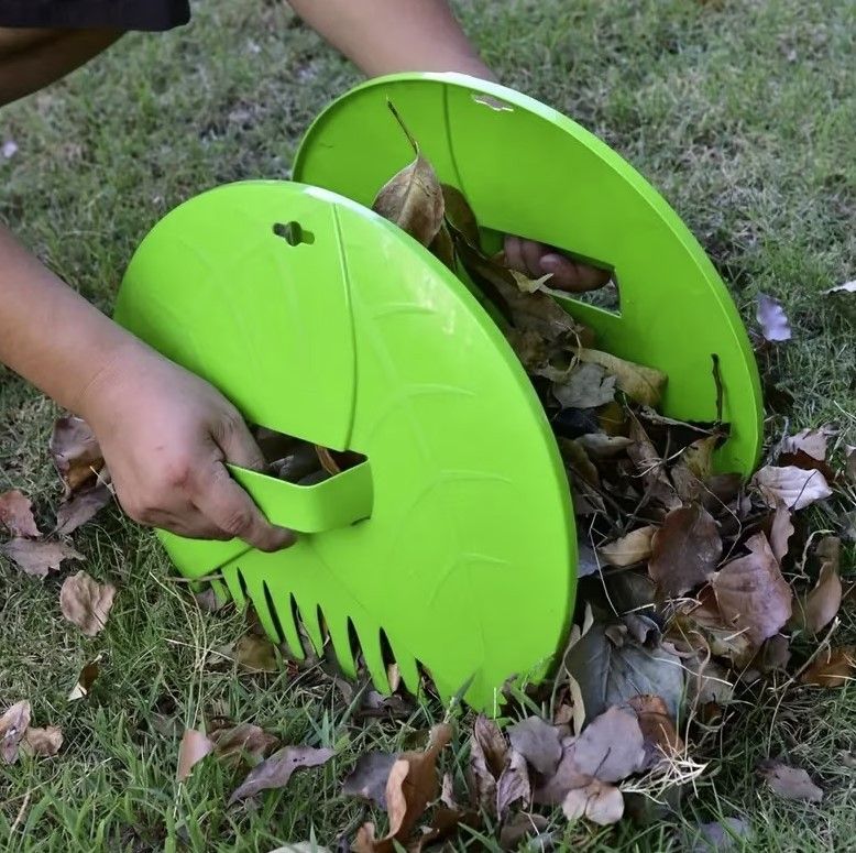 Colector manual de frunze engross, unealta de adunat frunzele, 2 buc/ set, din plastic, dimensiuni 36 X 31 cm, cu maner integrat, verde