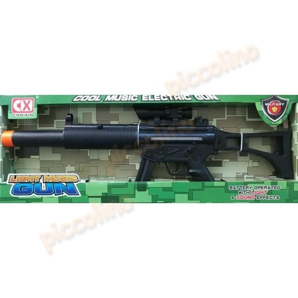 Pistol mitraliera de jucarie pentru copii – pe baterii, multicolora, 41x6.5cm, jucarie interactiva cu efecte luminoase si sonore,
