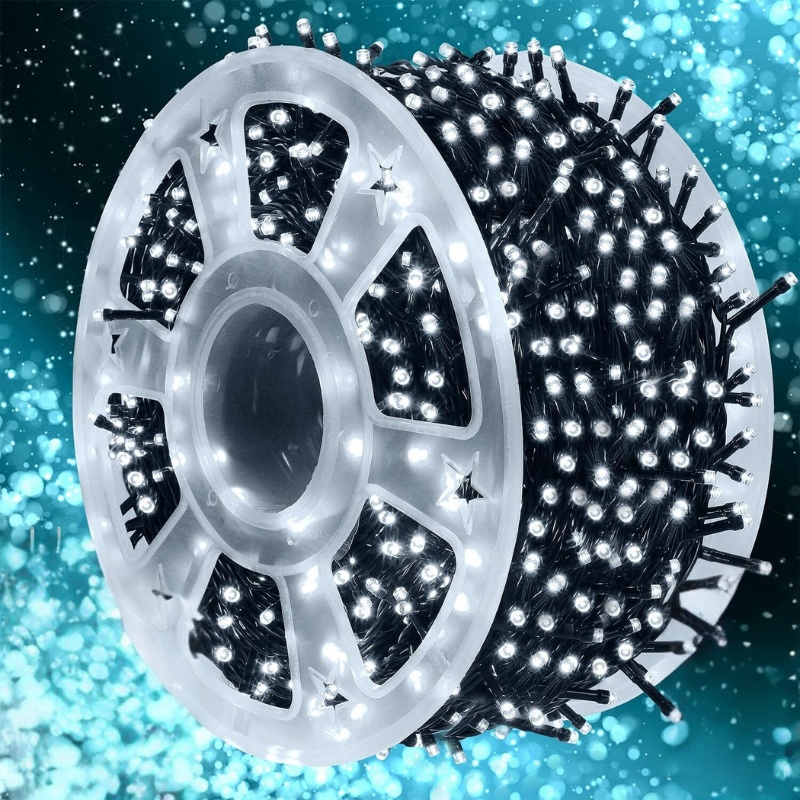 Instalatie Interior / Exterior - ALB RECE, Tip Liniara - Ornamentala Pentru Decorarea Casei si a Pomului de Craciun (Lungime Instalatie: 100 Metri)