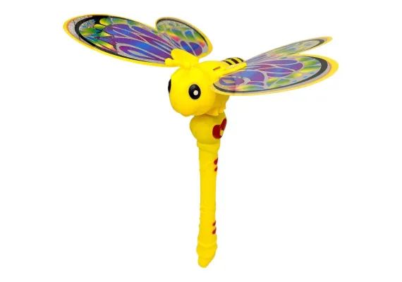 Jucarie zburatoare cu aripi tip fluture si design de albina – lansator interactiv manual pentru copii, 30 cm, culori vibrante,