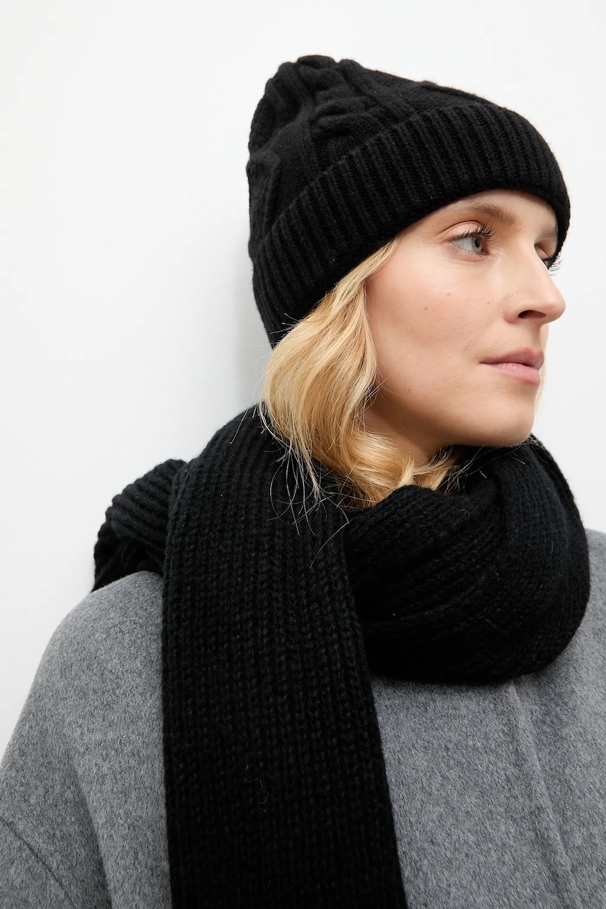 Solid caciula din amestec de lana culoarea negru, din tesatura neteda