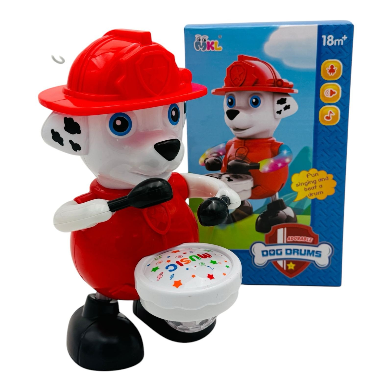 Jucărie Interactivă Cățeluș cu Tobă – Mers, Sunete și Lumină, 21.5×13×12.5 cm Engros