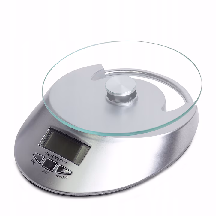 Cântar digital de bucătărie Kamille Engros KM‑7105 – precizie 1g, suprafață din sticlă, capacitate max. 5kg