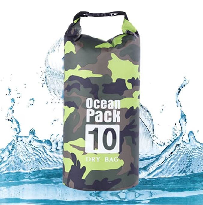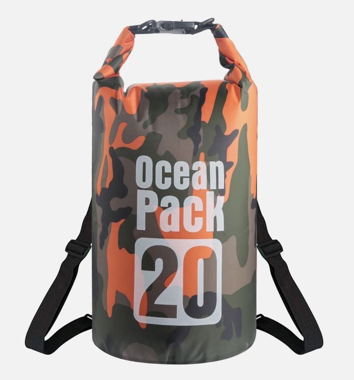 Sac Etans Ocean Pack 20L Camo , 100% Impermeabil, Protectie Contra Apelor, Nisipului si Prafului, Curea Reglabila Inclusa