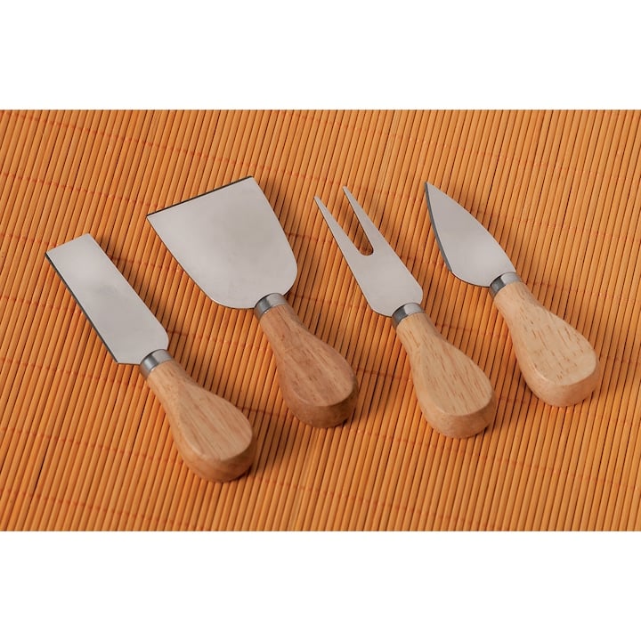 Set 4 cutite pentru branzeturi, otel inoxidabil, maner din lemn, 13 cm